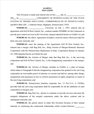 Download free printable novation agreement template samples in pdf, word and excel formats