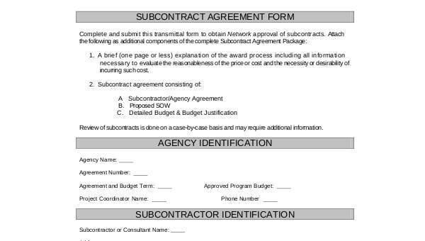 Always get a certificate of insurance from the "subcontractor". If an agreement cannot be reached on a revised subcontract statement of work and subcontract budget, the subcontract program will be terminated in accordance with article 11. 10 subcontractor agreement template for clients' subcontractor letter of intent template. sample subcontractor agreement for construction.